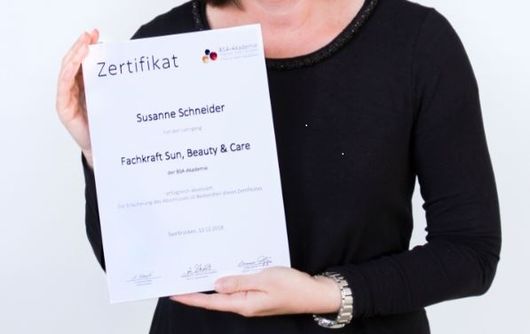 Mitarbeiter*innnen die mit UV Besonnungsgeräten arbeiten, können u. a. eine die staatlich anerkannte und zertifizierte Ausbildung zur „Fachkraft Sun, Beauty & Care“ erlangen.
